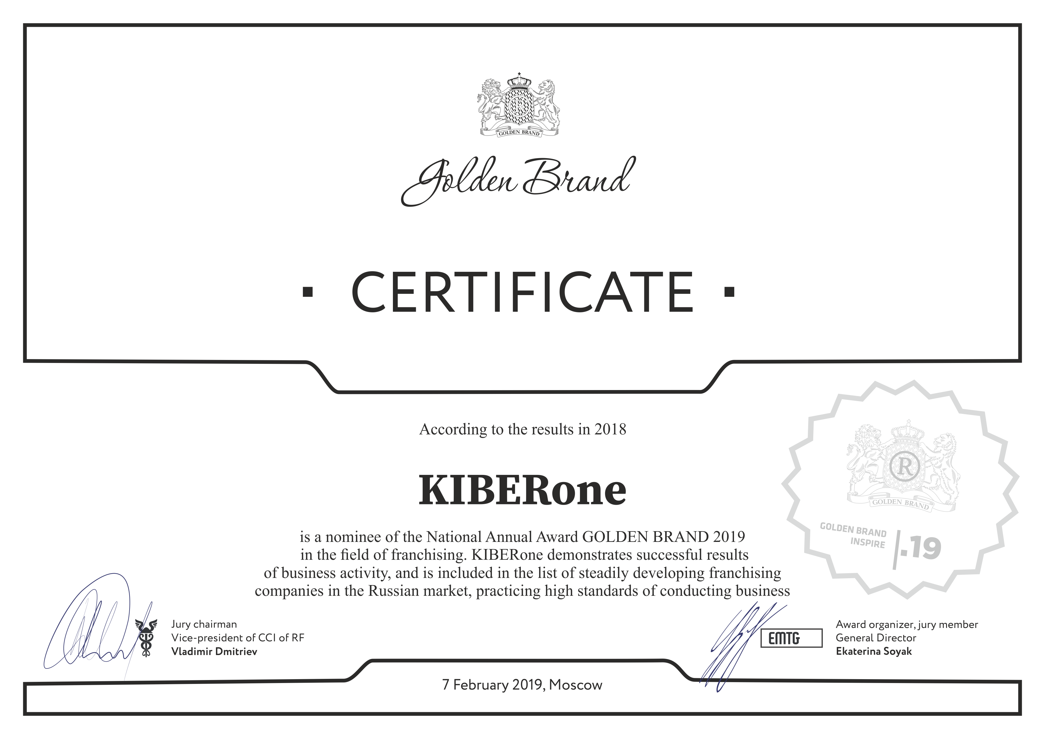 Nominiranec za preboj leta v nacionalni Franšizni nagradi Golden Brand 2019